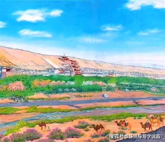 就连画花鸟果蔬,比如《鱼》《丁香花》《万紫千红》《野鸡》等,也离不开敦煌这里的风土人情。