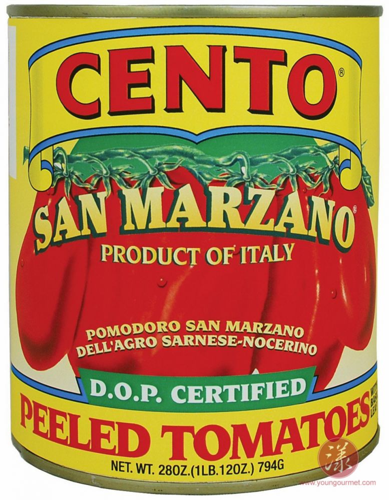 在番茄罐头的选择上,我个人比较偏爱整颗的剥皮番茄,感觉其更加完整的保留了番茄的清甜风味。源自意大利那不勒斯附近的 San Marzano 番茄少籽多汁,是世界公认的最适于做番茄罐头的番茄,记得要认准产区和罐头上 DOP 认证的标记。在美国,Walmart等不少大型超市有售,价格也并不昂贵。在美国本土的牌子里,我比较推崇Hunts。