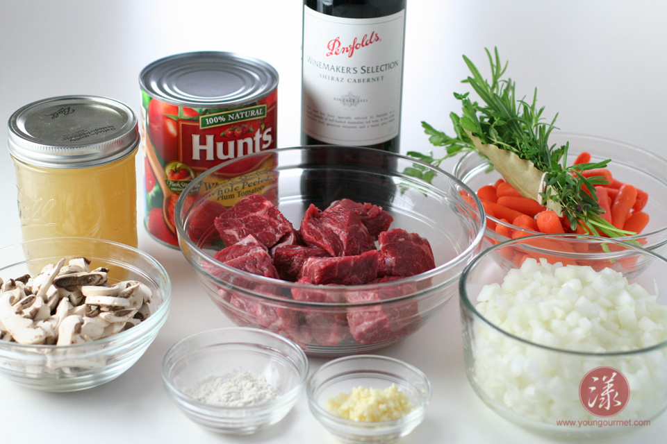 红酒炖牛肉的法文名字是 Boeuf Bourguignon (英文Beef Burgundy)。顾名思义,这道佳肴起源于法国东部的勃艮第地区。作为举世闻名的葡萄酒产区,Burgundy 盛产的干红Pinot Noir (黑比诺) 口感细腻柔顺,果香馥郁,非常适合用来做炖肉。