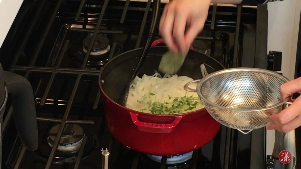 6) 3 杯左右的清水或高汤 (用清水可以最好的体现洋葱自身的清甜,也可以选用骨高汤)