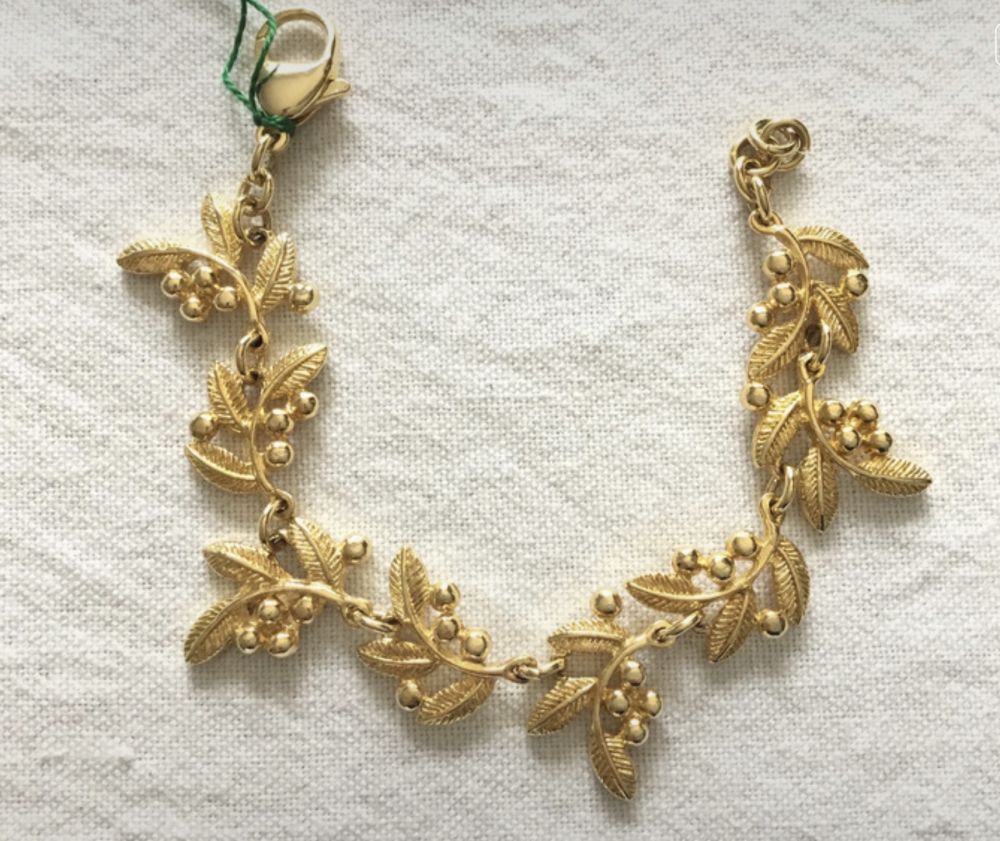 金链子上大大小小圆润珍珠,戴在黑色长裙上,是不是很漂亮?只可惜我也只戴过一次,那是某个新年前夜。还有的珠宝甚至从来都不曾戴过。这条手链,那是某年我们去巴黎歌剧院,在Capucine 大道上的首饰店里,我一眼相中了它的枝叶,很art nouveau ,也很卡地亚。它在我的首饰盒里躺了二十多年,连价格标签都没有取下来。有太多首饰遭遇着同样的命运。其实我可以让它们重获新生啊!于是就这样它们在我的小店铺里等待新的主人。
