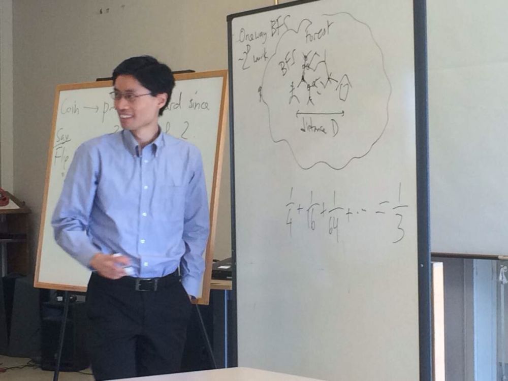 忘了介绍Poh-shen的背景了。他现在是著名的卡内基梅隆大学教授,去年接任美国奥数国家队主教练,当年他代表美国曾拿下国际奥数银牌。他的弟弟Po-Ru Loh更厉害,在2000-2004年间为美国拿下二金一银。他的妹妹也是女中豪杰,不但数学好, 在加州理工大学还辅修英文。后来拿了加大伯克利的电脑硕士,现在伯克利读统计学博士。当本虾提到她写的一首数学诗时,着实把帅哥吓了一跳。看来兄妹三人是美国数学界的苏门三杰啊!