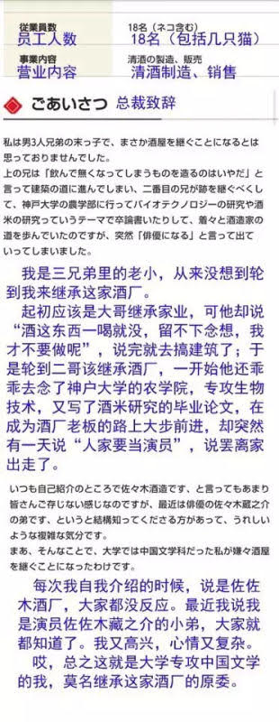 先看这篇,日本一家清酒厂的企业介绍和总裁致辞。