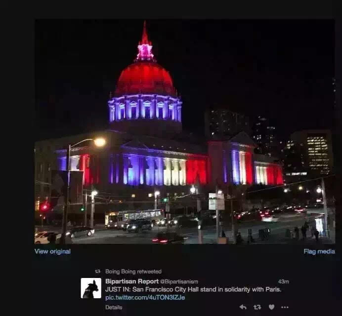 突然意识到为什么巴黎被选中袭击了。他们就是要把文化之都作为靶子,给热爱生活、享受文明的人们一个重击。在他们眼里,文化、温情、爱都是该消灭的。还有什么比巴黎更合适的呢?这不是文明的冲突、文化的对抗,这是野蛮与文明的对峙,是野兽和人类的决斗!