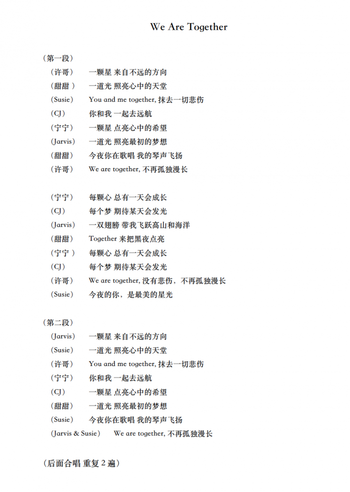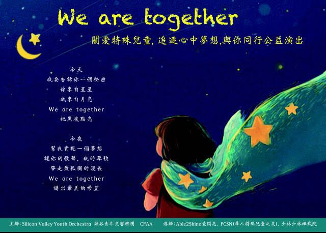 今天类似的佳话又发生在了硅谷华人圈,一首最新录制的歌曲《We Are Together》,带着创作者和演唱者满满的爱心传递出来。请先感受一下这首歌曲,下面的歌词便于你在听歌的同时follow。