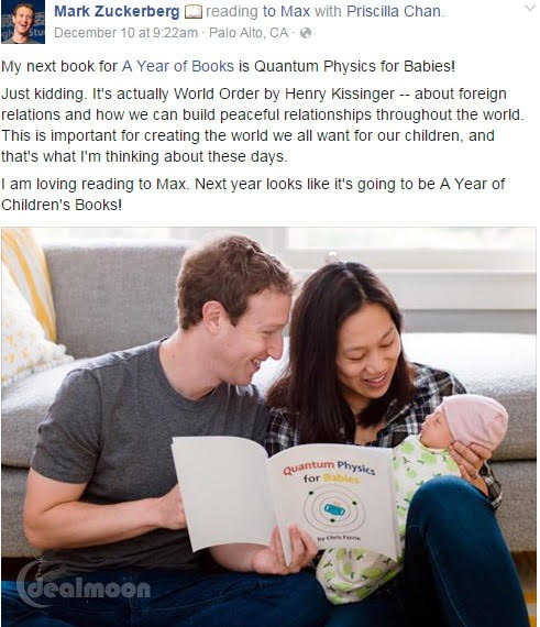 小扎夫妇在给孩子读《量子力学》,他自己说是在开玩笑。