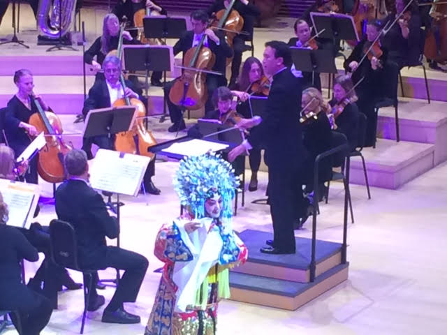 只听这位特邀京剧名角丁泓樱唇开启,京剧二黄调式缓缓流出,"梨花开,春带雨,梨花落,春入泥。此生只为一人去,道他君王情也痴。 天生丽质难自弃,长恨一曲千古迷"。哎呀,千年前大唐的贵妃就这样穿越到斯坦福的乐池中,观众们一下子被这种突然的美"Bing"地一声惊得窒息了。