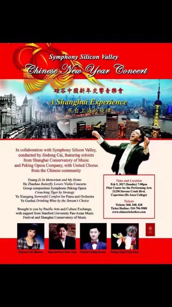 搞到斯坦福春节音乐会的免费票,约了朋友一起去欣赏。在异国他乡享受这样一场中西合璧、贯穿一个世纪的音乐盛宴,美从心起。