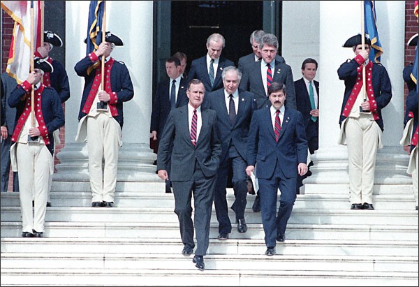 Michael Cohen是里根时期以来影响美国教育政策的另一个重要人物,学历不详,在1985-90年间担任全国州长协会(National Governors Association,NGA)的教育政策主任,是时任阿肯色州州长、分管NGA教育政策事务的克林顿的部下。1988年布什以“教育总统”作为吸引选民的亮点赢得了大选。1989年9月27和28日,在克林顿和Cohen的策划下,布什总统和49个州长召开了美国历史上第一次教育峰会,克林顿担任峰会主席。这也是美国历史上总统和众位州长为某个单一议题而举行的第三次集会,前两次分别是1908年以自然保护为主题和三十年代大萧条时期以振兴经济为主题的集会。峰会上确立了几项2000年时美国应达到的国家教育目标:所有学龄儿童都做好入学学习的准备;所有成人都能读写并拥有工作技能;高中毕业率达到90%以上;美国学生在数学和科学上达到世界第一;在英语、数学、科学、历史、地理等各科都达到熟练掌握的程度。峰会之后,克林顿与布什的内务顾问 Roger Porter继续跟进峰会确立的国家教育目标,美国2000年教育目标成为1990年的布什总统国情咨文的中心话题。