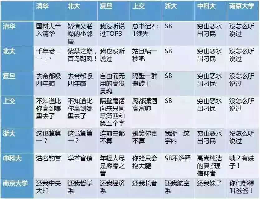 国内的鄙视链是:top2清华北大的歧视国藤(C9)中剩下的7所,国藤的再歧视211大学。有一网友赤裸裸地说,上牛校的目的就是要在饭桌上吃饭时自己夹菜的时候别人不敢转动转盘。这是在等级社会里多么痛的领悟呀!