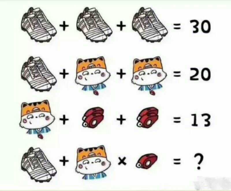 2. 红色哨子是两个叠加放置的,第四个算式中却只有一个哨子(请睁大你的人眼!!)