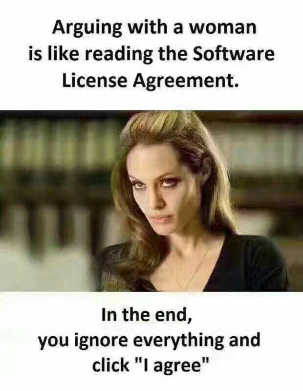 和女人吵架如同阅读软件许可协议书,