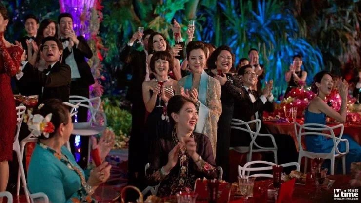 影片以熟悉的歌曲《何日君再来》开场,片中充斥着目不暇接的典型亚洲文化场景:华人流行音乐、大排档、合家包饺子、美轮美奂的婚礼场景、各种货真价实的名牌服饰和珠宝等,还有门当户对等文化价值冲突,的确让人有很大代入感。