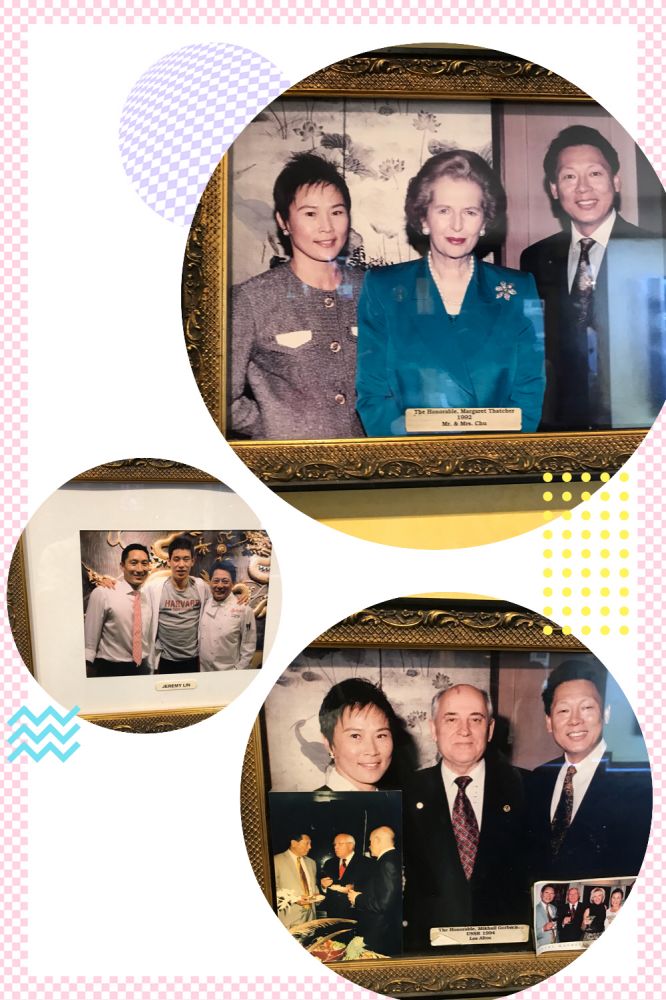 下面这些照片是本虾趁着等人的空儿拍下来的,显示出很多名人显要都曾光顾这里:撒切尔夫人、戈尔巴乔夫,林书豪、小肯尼迪、卡特、老布什、舒尔茨、贝布托、乔布斯、