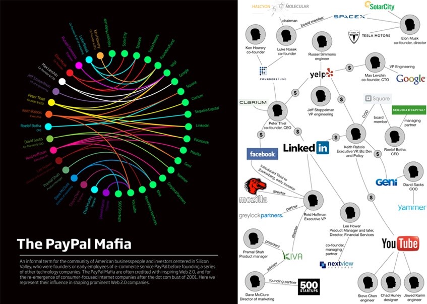 多年前《财富》杂志把PayPal公司的创业群体称为“PayPal Mafia",并称他们为“硅谷中最富有、最著名和最有权势的一群人。”Mafia在英文里是黑手党或黑帮的意思。这个“黑帮”的成员及其创办的著名公司一直在不断地发展壮大。