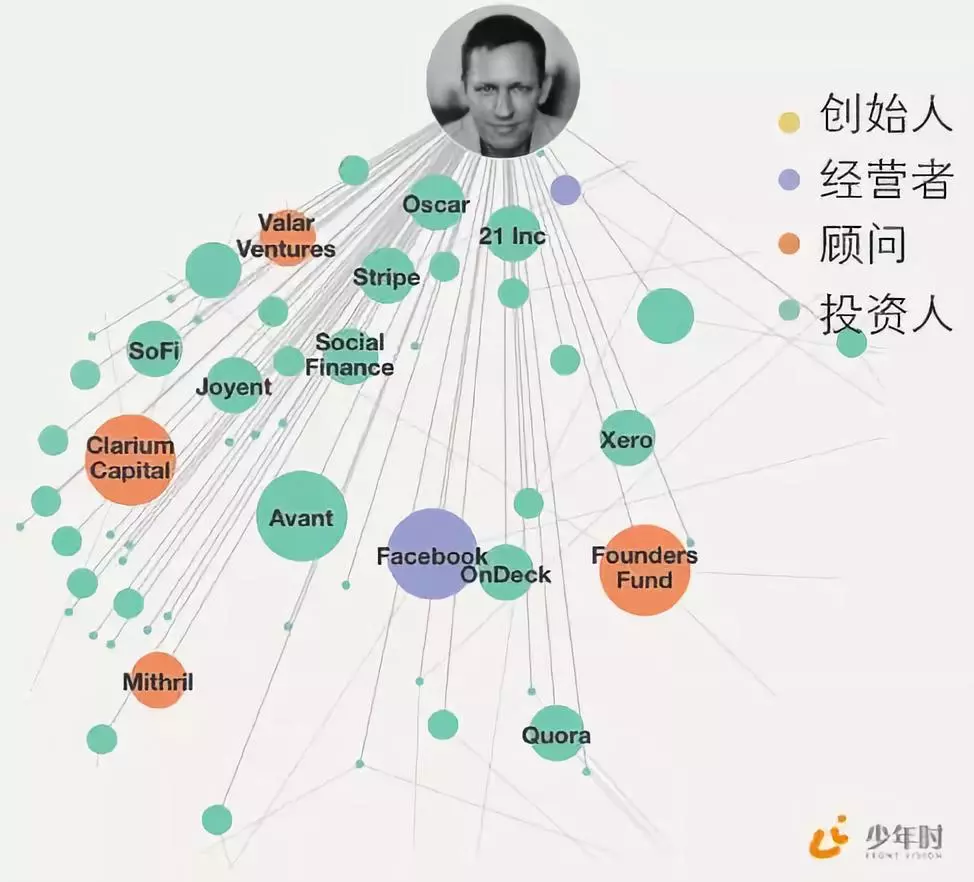 蒂尔作为PayPal 联合创始人之一,将持有的3.2%股份全部套现成5500万美金。蒂尔成功退出PayPal ,但却为其后来的发展积累了财富、经验和人脉,而这三者汇集在一起并不是加和关系,而是乘法甚至是乘方关系。