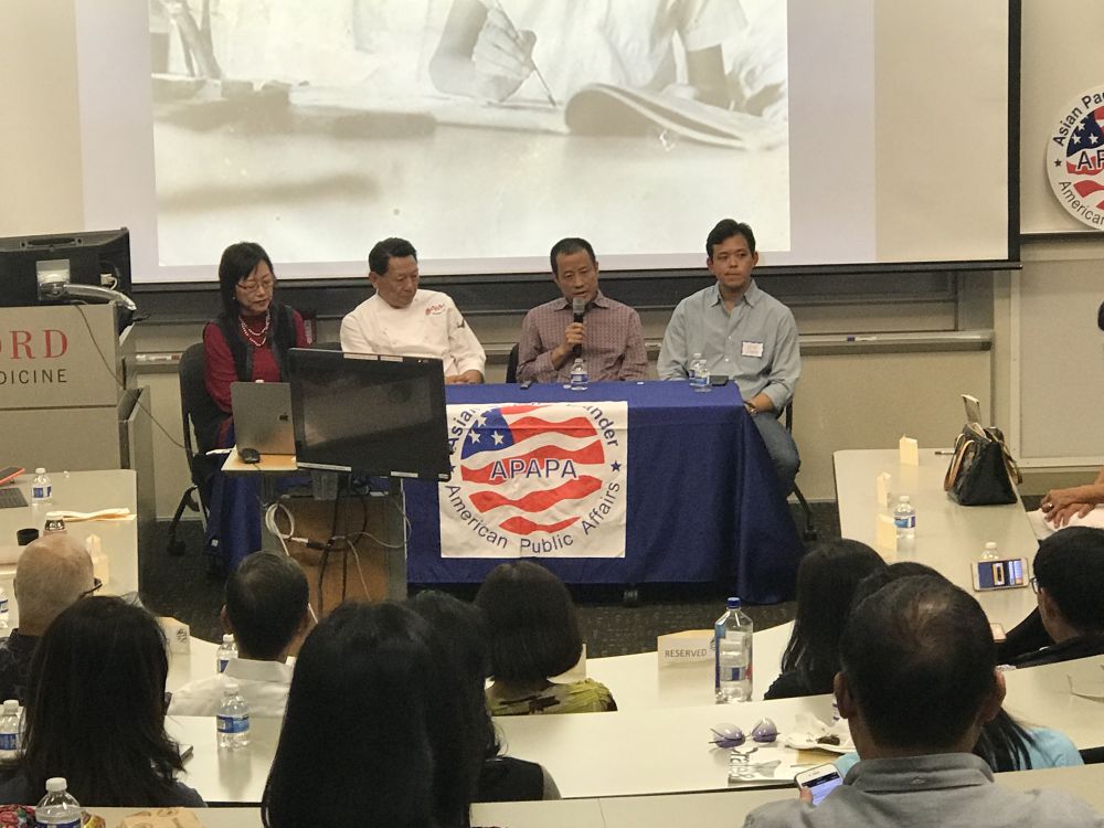 谢教授是应APAPA邀请做嘉宾分享他的人生经历的。另两位嘉宾一位是年青的联邦检察官Eric Chang,另一位是Chef Chu餐馆的朱老板。关于Chef Chu和他著名的导演儿子,本人曾有一篇文章《老爸在拼米其林 儿子在拼好莱坞》有介绍。
