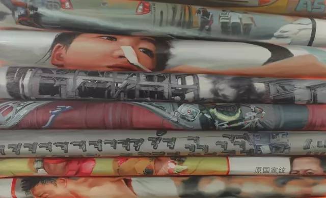 比如这幅画(片断视角系列之一),由许多报纸卷叠起来,内容为当时热点新闻,很有创意。它引发人们思考历史和记忆的不完整性和易逝性。