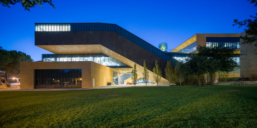 谢教授的工作室在一座独立的小楼里,看上去象一个小城堡。工作室空间很大,房间的一面墙其实几乎就是一堵大玻璃窗,打开帘幕视野极佳。谢教授曾回忆说,当他到斯坦福面试来看这个工作室时,突然想流泪。这简直就是一个艺术家的梦想之地啊:宽敞、明亮、僻静、环境优美。当时一下子就喜欢上这里了。