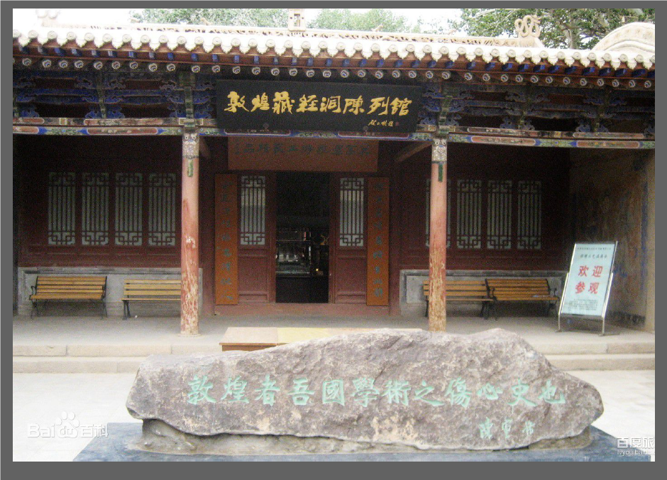 敦煌藏经洞陈列馆前的一块大石头上醒目地刻有著名历史和国学大师陈寅恪先生的话:"敦煌者,吾国学术之伤心史也"。这句话是先生为陈垣的《敦煌劫余录》一书所作的序。
