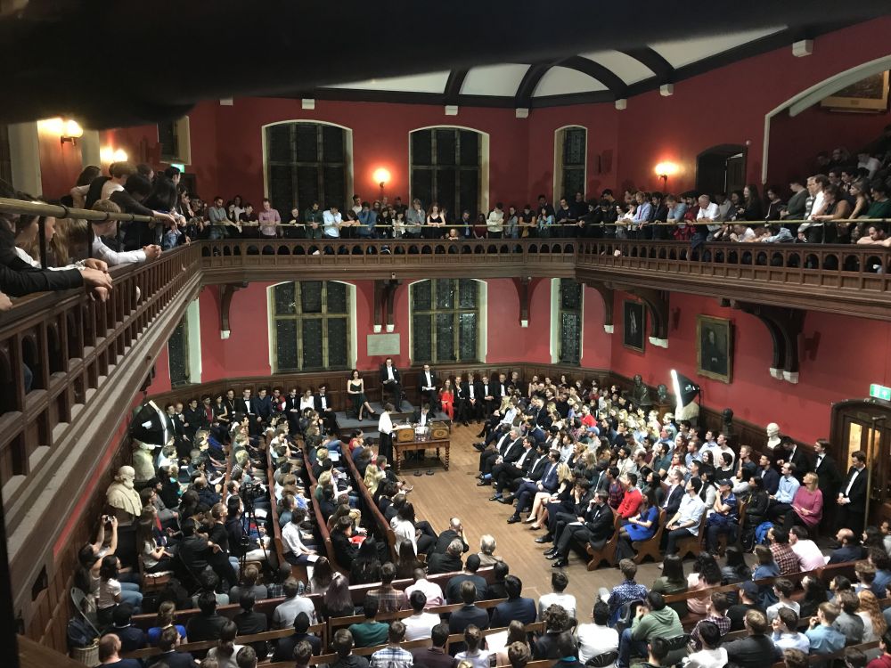 Oxford Union也是辩论活动的场地。正式的活动每周四晚上,分不同等级,高级的带初级的。下图是辨论现场,辩手、裁判都是正装出席。