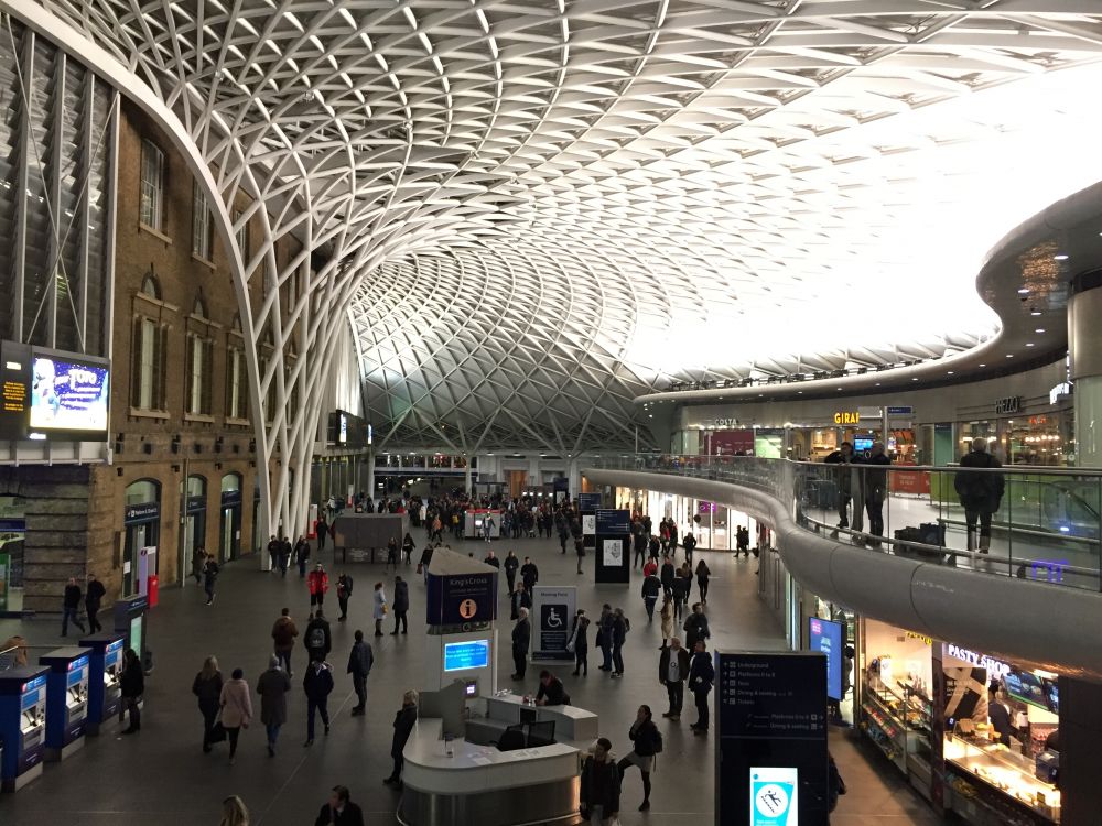 王国十字站 (King's Cross) 是个大站,火车地铁在此交汇,前往法国的高速火车"欧洲之星"也是从这里出发。电影《哈利波特》有一个9又3/4的月台就是在这里取景的,从此这个站台便成了成了哈粉们的重要去处。