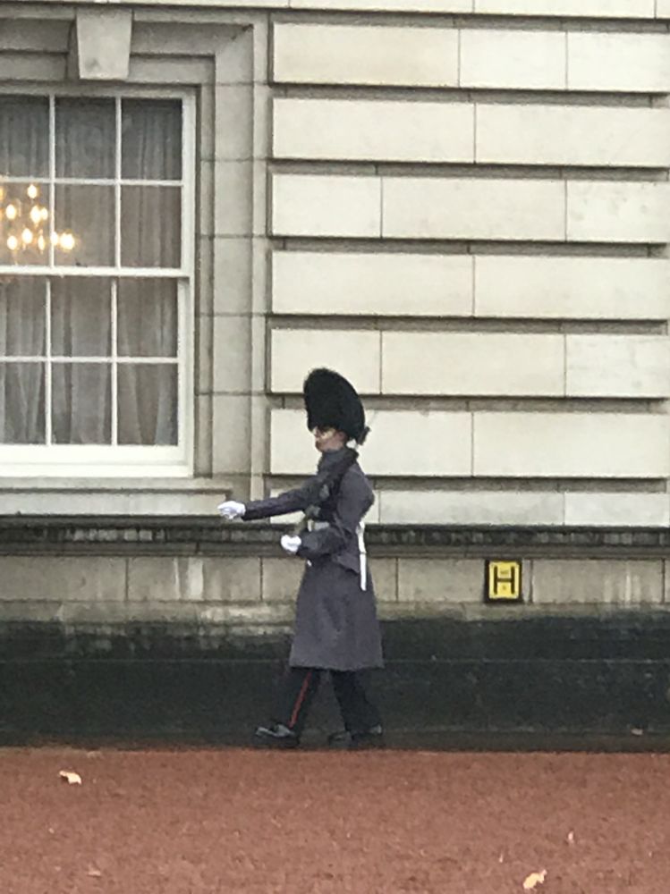 隔着铁栅可以看到远处穿戴特别的皇家卫兵(Queen’s Guard),他们在夏季的每天、非夏季的隔天早上11:30准时换岗操练表演,届时会人挤人,需要提前占据有利地形。