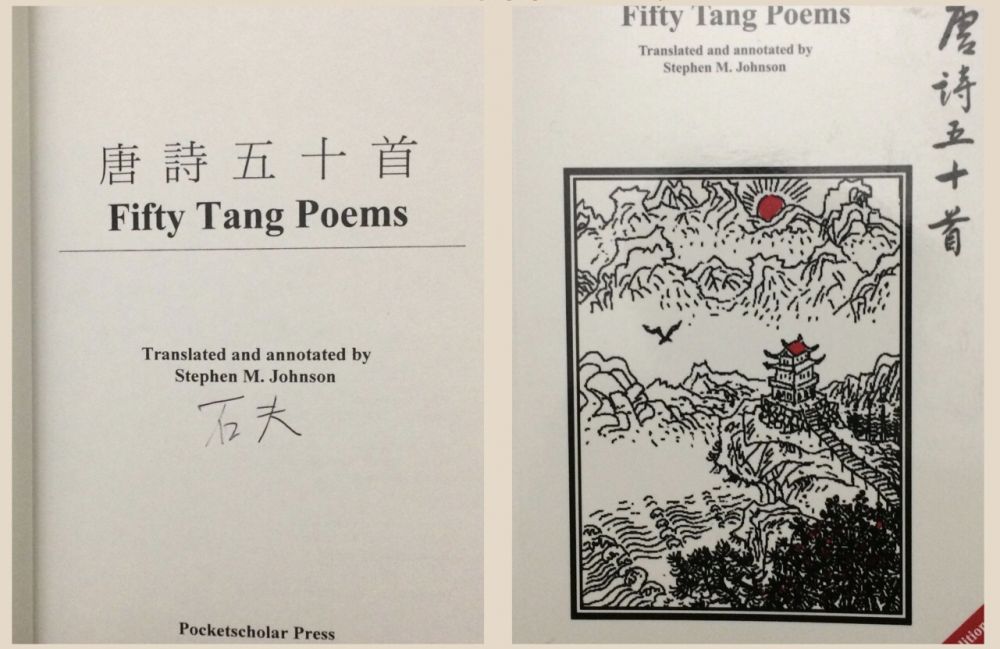 多年前,我家儿子和女儿都分别受教于他,因此机缘,本虾得以认识了他,他还送我一本他翻译的《唐诗五十首》,当时给他钱他不要。他的中文笔名叫石夫,大概是英文名字Stephen 的音译吧。