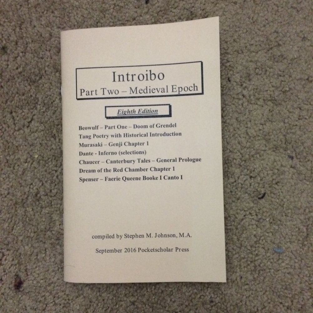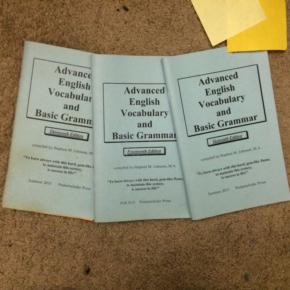 Mr. Johnson 的课安排得很紧凑,有词汇、语法和经典文章的阅读。教材是他自费印刷的好几本小册子:语法和词汇、经典文章精选、莎氏比亚、现代中国历史,甚至还有红楼梦等等。小册子字体很小,每年更新,有的已不知到第二十几版了。封面最下面很俏皮地列出出版社的名字:Pocketscholar Press (口袋学者出版社)。