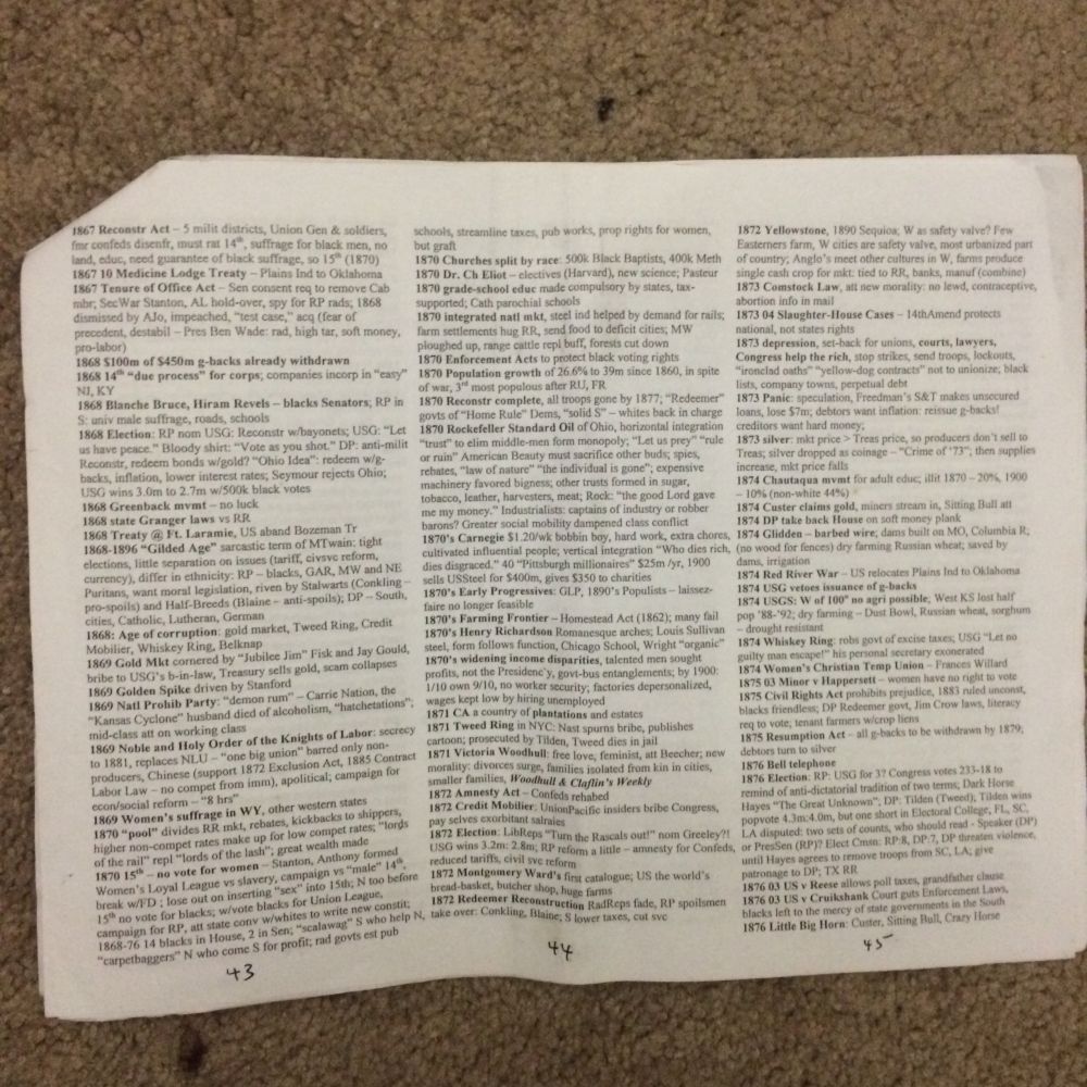 历史学习也是用类似的抽查背诵方式得以强化,当然这些枯燥的历史内容和细节在课堂上都经Mr. Johnson 生动的教学而变得有趣,加上这种课后自我复习、课上快速轮流问答的方式,这门令许多孩子头疼的庞杂课程就被分解为长年点滴的积累,变得不再是负担了。下图就是其中一张历史年表,密密麻麻,但脉络清晰。