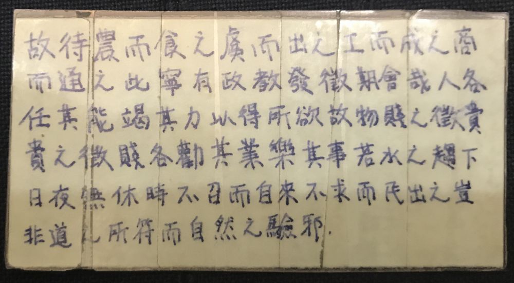 这次见到Mr. Johnson,提到此事,他居然能立刻从钱包里掏出一张小卡片,正是这段文章的中文原文: