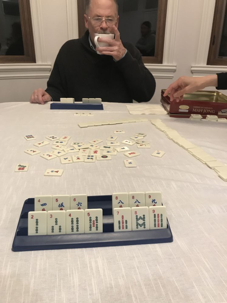 饭后大家一起玩麻将,Mr. Johnson这个中国通当然也精于此道,他居然连和两轮。这也是我第一次见到这种薄片麻将。