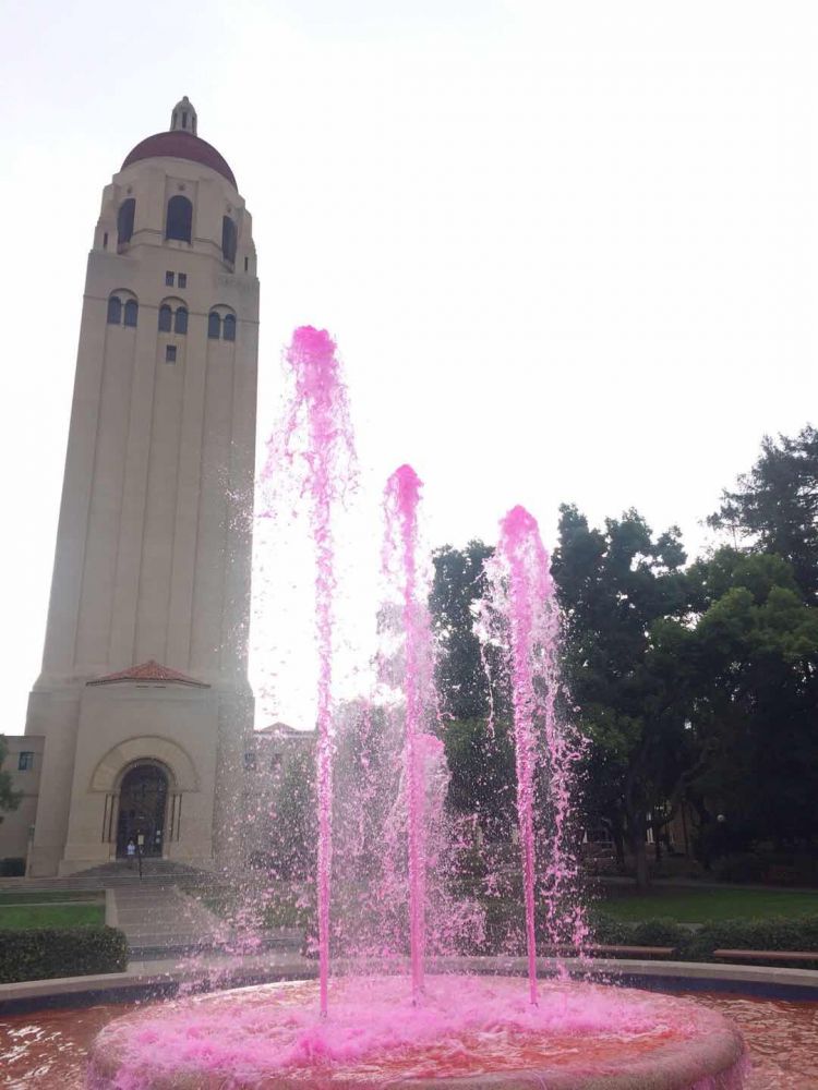两所名校距离一个多小时的车程,互有瑜亮情节,堪称绝代双姣,是硅谷的左右脑。每年感恩节前两校的橄榄球大赛,两校学生倾巢出动,剑拔弩张,整个城市万人空巷,捷运上也挤满了年青人。每到这种盛事,胡佛塔前的喷泉就会改成粉红色,令人感觉到血腥撕杀的紧张气氛。