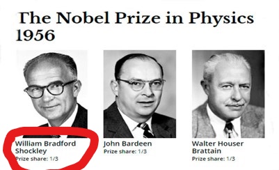 肖克利本来是贝尔实验室(AT&T Bell Labs)的,1956年因半导体晶体管的成就与Brattain和Bardeen共享诺贝尔奖。