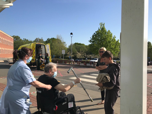 交接完,转头正要离开,两名护士推出一个老年人,一出门大家拍手,原来他出院了。我随他们一起出了医院,老人家里的孩子们正在门口等着,亲人相见,喜悦在淡定的交接中舒服地浅浅流露,两位护士微笑着和他们挥手告别,推着空轮椅进了医院。