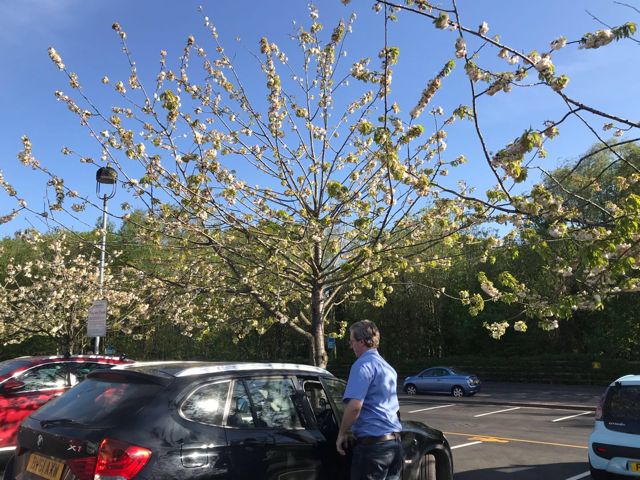 我也迈着轻快地步伐走向停车场,停车场里一排排的梨花开得正盛,在蓝天下显得特别地美。以前我一直没有明白为什么女儿从小到大都不怕去医院,今天我突然感受到英国的医院是给人力量和希望的地方,它用最沉着的淡定化解了人们的焦虑。