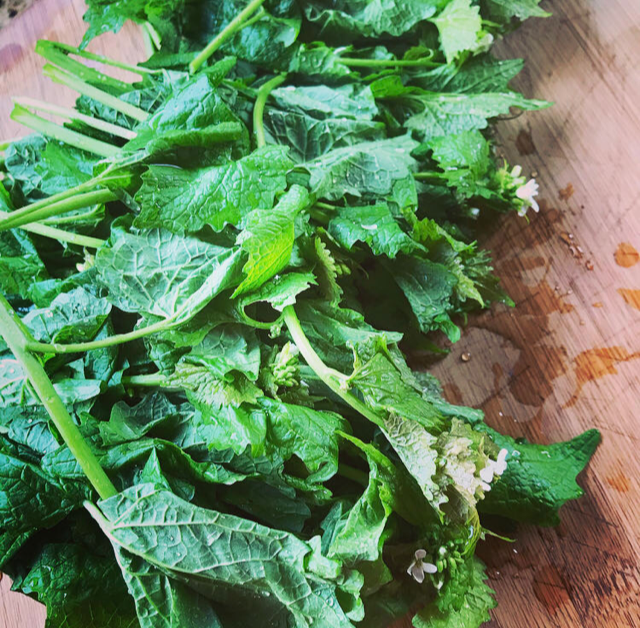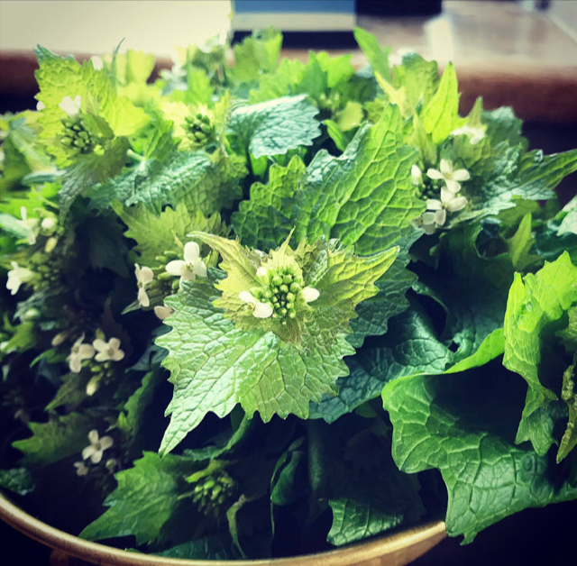我家门口信筒后面有一小块坡地,因为朝北,又在一棵大树下,鲜有太阳照到的时候,没法打理,一直就是片荒草地,今年头两个月,雨水极多,我们这里成了全国洪涝灾害的典范。水刚过去,瘟疫又来了,禁足的日子里,突然发现这片荒地长出一片密密麻麻的顶着白花的看上去还蛮养眼的植物,叶子浅绿,单茎,一折即断,还很嫩,凑到折断处闻一下,芥末味儿。一查书,啊哈,是蒜香芥末!这名字,太性感!