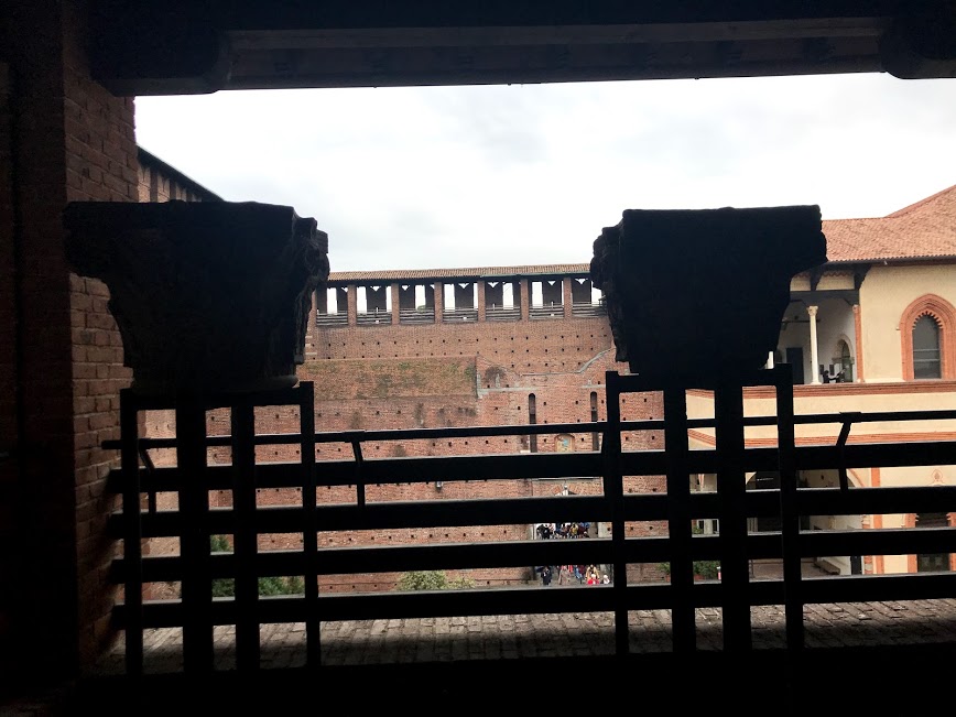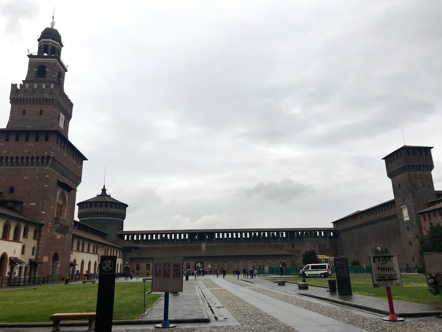 人间四月天,春行之中,路遇古堡一座,远望峨峨然。近之有牌名曰米兰斯福萨堡也 (The Sforza Castle of Milan)。进得堡内,草茵地阔。更有塔典楼雅,环偎四周,不在话下。