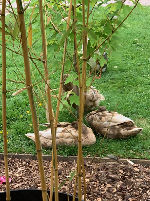 六个月以后,鸟们能分出公母。鸭子最惨,两公一母,好在公鸭比较敦厚,不太为雌性争执,每日一前一后护卫女士巡视花园,一左一右树荫下共枕同眠,倒还是和谐。