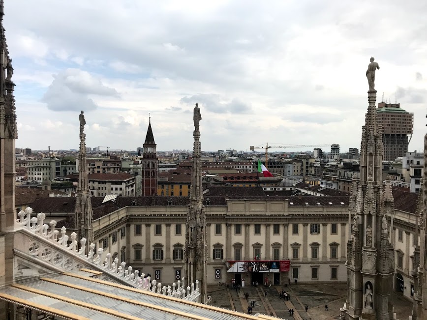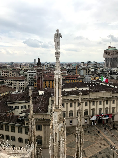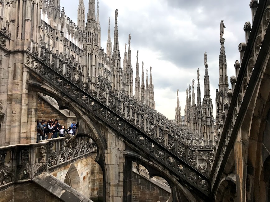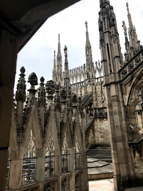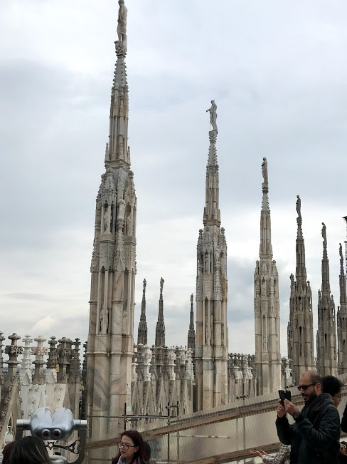 饭后在教堂里上下求索正好也是个好运动。进教堂的门票和登顶的门票得分别另买,我决定先登顶。共有6座石梯和两个电梯通往屋顶,我选择拾级而上,经过920级阶梯抵达屋顶,一路看尽米兰各个角度的风釆。