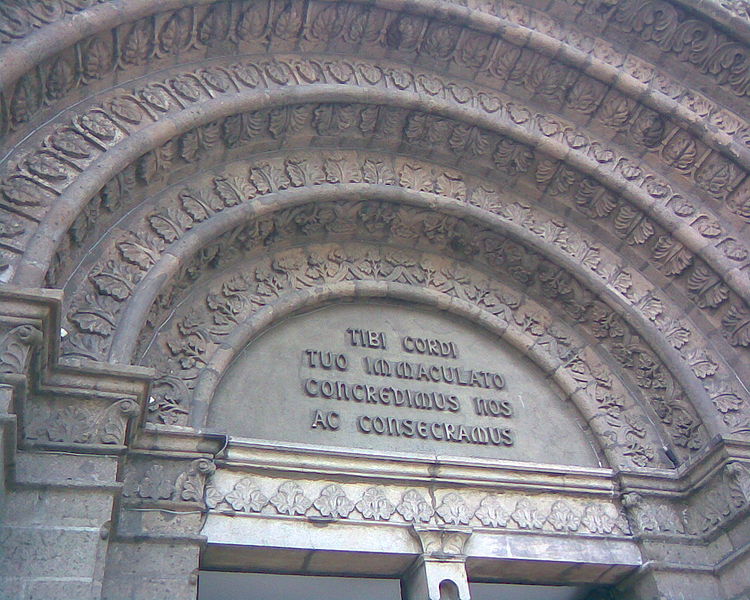中央大门系最大铜门,乃重中之重,亦称圣母玛丽亚之门。顾名思义,雕刻以圣母玛丽亚一生为主题,正如大教堂亦献于圣母玛丽亚。