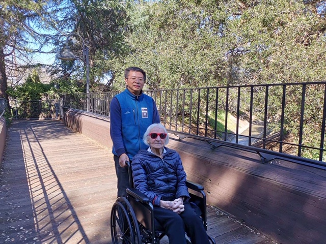 在推老太太的路上,她和我们的话题很广泛,可以看出她一点都没有脱离时下的热点。她和我们讲到几天前的斯坦福学生自杀事件,讲到川普,讲到APAPA (一个亚裔组织),讲到我们共同认识的一些人,还讲到流行电影《疯狂亚洲富豪》(Crazy Rich Asians)。我问他喜欢这个电影吗?她说”I love it”。她说主要原因是片中的文化和犹太人极相似,那种门第观念、那种富贵家族的生活,她很熟悉很理解。这些经历了一个世纪岁月的老人,人生的智慧和阅历都是无价之宝啊。
