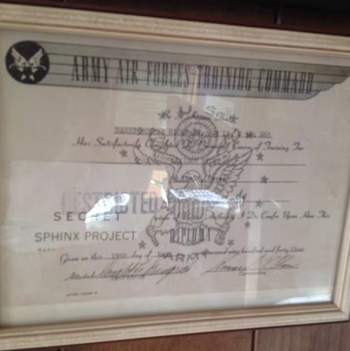 下面照片是Harry在二战时完成秘密训练的证书,能从模糊的照片上看得出那个秘密训练叫司芬克斯项目。