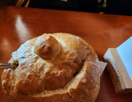 欧洲人喜食土豆和蘑菇, 我和先生点的这个面包做的瓦罐里放的是蘑菇汤, 味道鲜美醇厚, 非常有地方特色。