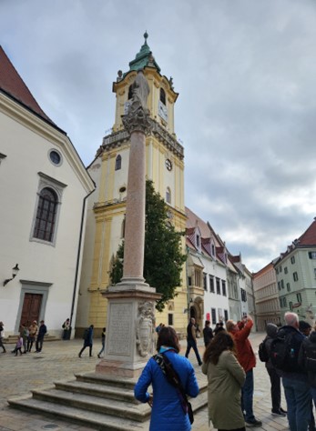 女导游说这里看过去,越过多瑙河,布拉迪斯拉发是全世界唯一一个与两个国家(匈牙利和奥地利)同时接壤的首都。