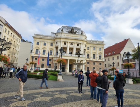记得几日前,我们旅游团一行从波兰去匈牙利,曾穿越过斯洛伐克(Slovakia), 还在路边漂亮的饭庄吃过特色饭菜,只是我们没有进城观景,今天我们将从另一方向去斯洛伐克的首都布拉迪斯拉发 (Bratislava)一游。