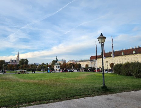 今天是周日,维也纳很多人不工作,但也有很多人在工作,各种博物馆都开门, 餐馆也有很多开着门,公共汽车也开着, 酒店旁边的城市公园也开着。因为疫情被关了几年的人们开始走出家门,维也纳街头很热闹。