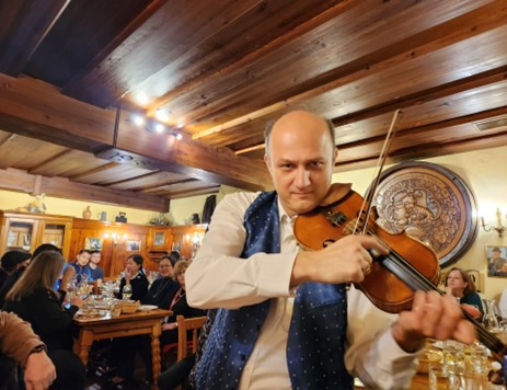 进餐未几,一个高大的男子就进来为大家表演小提琴。