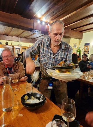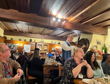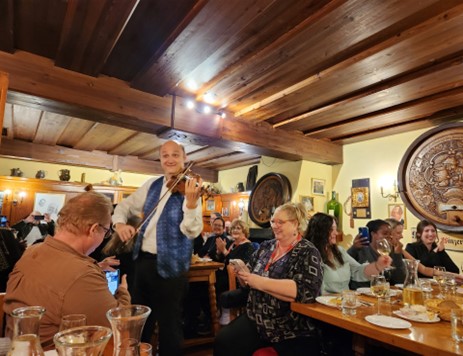 转完维也纳一角,心满意足回到旅馆, 晚上Gate 1 组织大家去维也纳城外一家很有农庄气味的餐馆就餐。