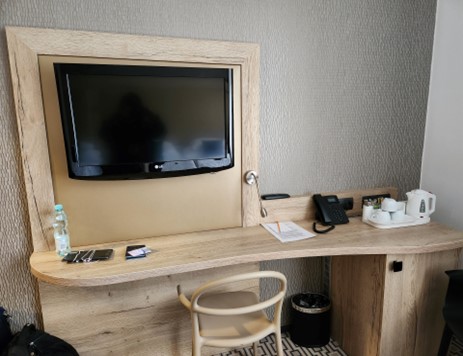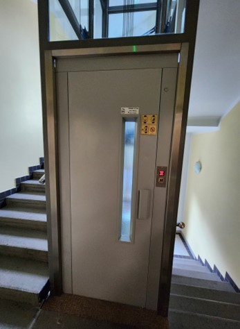 房间摆设简朴素雅,很有年代感。最具特色的是电梯,完全像老电影中的旧式电梯,很小,有两道门,电梯上下可见线路走动。